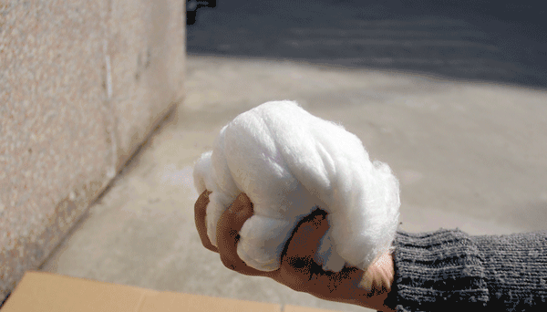 经过一个简单的干冰测试,蚕丝被呈现出了良好的透气性。