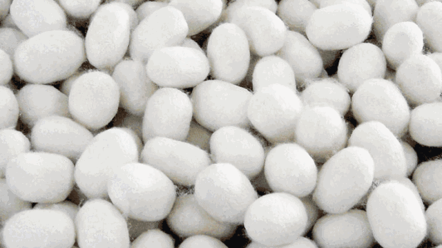 通常情况下,100颗蚕茧中,才会有3-5颗双宫茧,而我们一床500g蚕丝被的用料在800颗双宫茧左右。