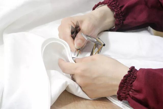 采用纯手工定位,定位针脚细腻,保证蚕丝被的柔软性和贴身性。