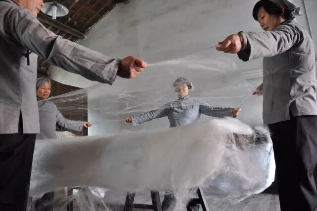 不同于机器拉丝的容易板结变硬,手工拉制保证每床蚕丝被都是蓬松柔软,贴身舒适,经久耐用。